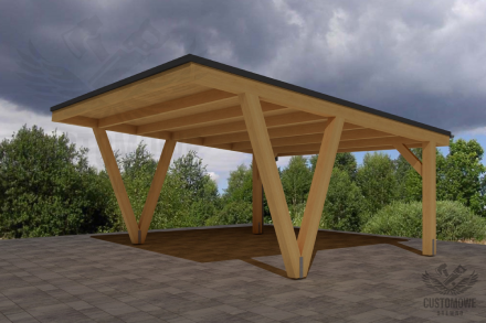 Cała wiata powstaje z drewna klejonego zabezpieczonego środkami ochrony drewna w dowolnym kolorze. Zadaszenie w podstawowej wersji pokrywa papa termozgrzewalna, sposób deskowania to pióro-wpust. Dostępna jest usługa montażu innego pokrycia dachowego np. gontu bitumicznego (dostępny w wielu kolorach), blachodachówki, blachy oraz dachówki na zamówienie.
