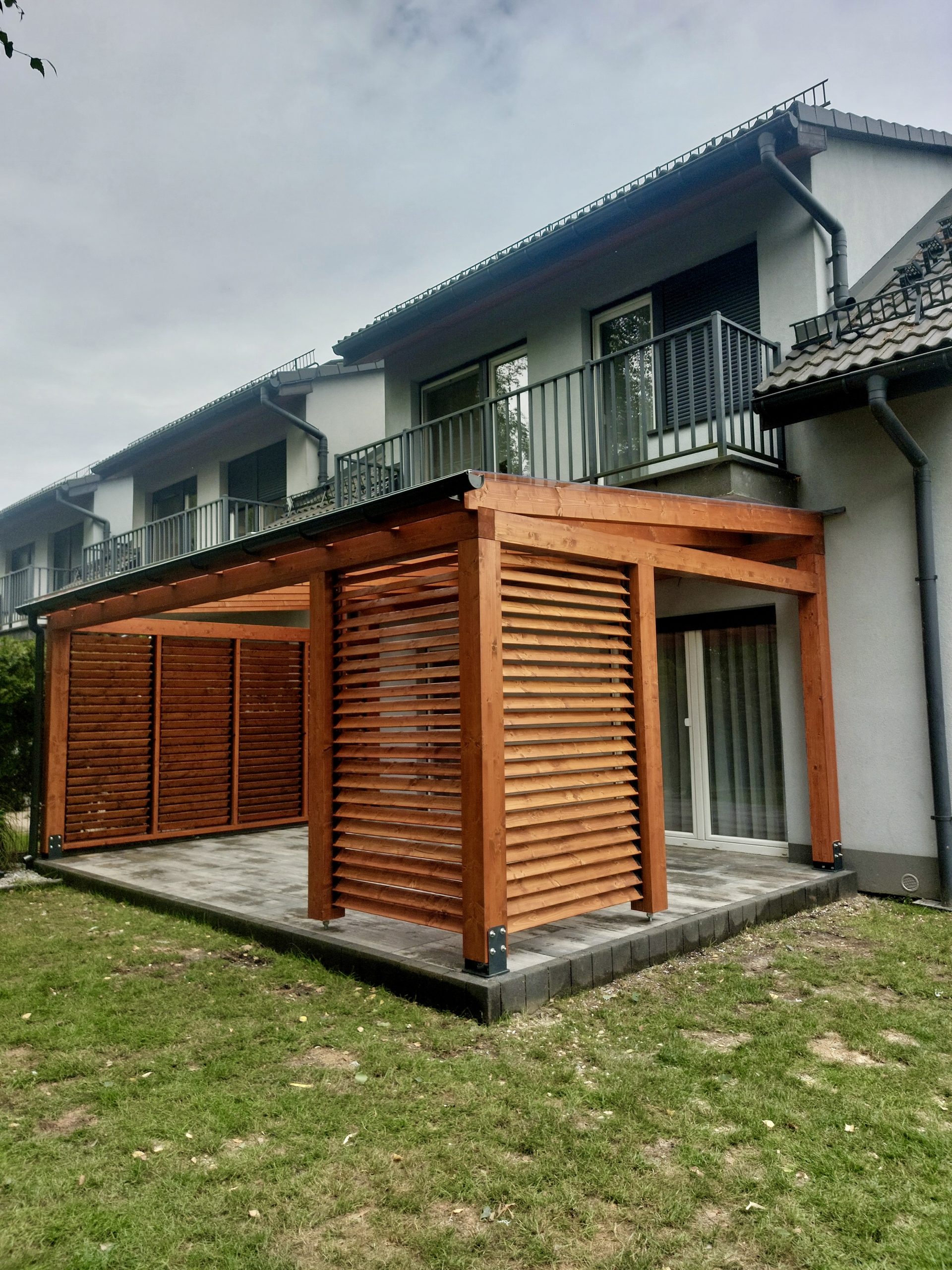 Zadaszenie tarasu z pokryciem z poliwęglanu litego to elegancka i funkcjonalna konstrukcja, która łączy naturalne piękno drewna z nowoczesnymi materiałami. Drewno BSH zapewnia wyjątkową stabilność i trwałość, a jednocześnie doskonale komponuje się z otoczeniem, dodając tarasowi ciepła i charakteru. Pokrycie z poliwęglanu litego gwarantuje doskonałą ochronę przed deszczem, śniegiem i nadmiernym nasłonecznieniem, jednocześnie przepuszczając naturalne światło, co sprawia, że przestrzeń pod zadaszeniem pozostaje jasna i przyjemna.